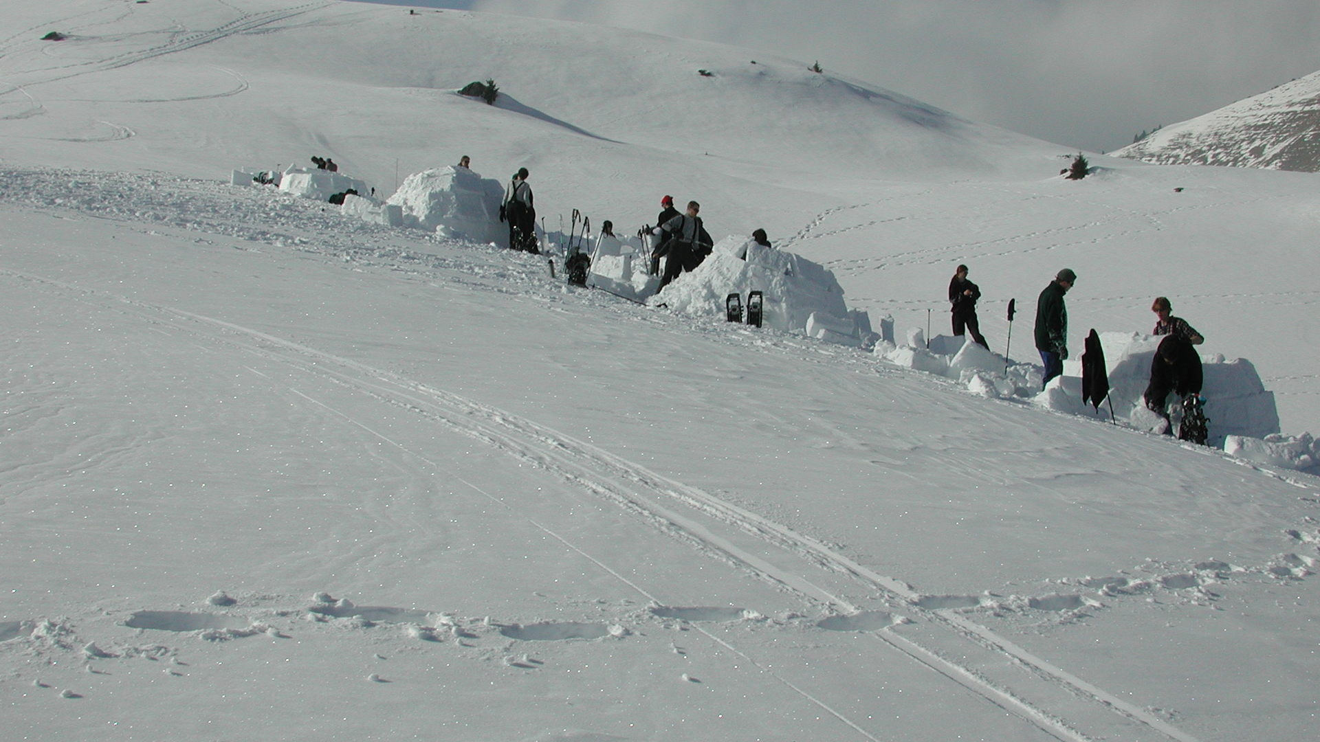Wir haben verschiedene Filme, die das Iglu-Bauen dokumentieren. Die hier verwendete Iglu-Bau Technik ist sehr nahe an der Bautechnik der Inuits. Wir verwenden keine Hilfsmittel, ausser einer Schneesäge. Film über den Bau-Beginn eines Iglus (4MB) auf YouTube.