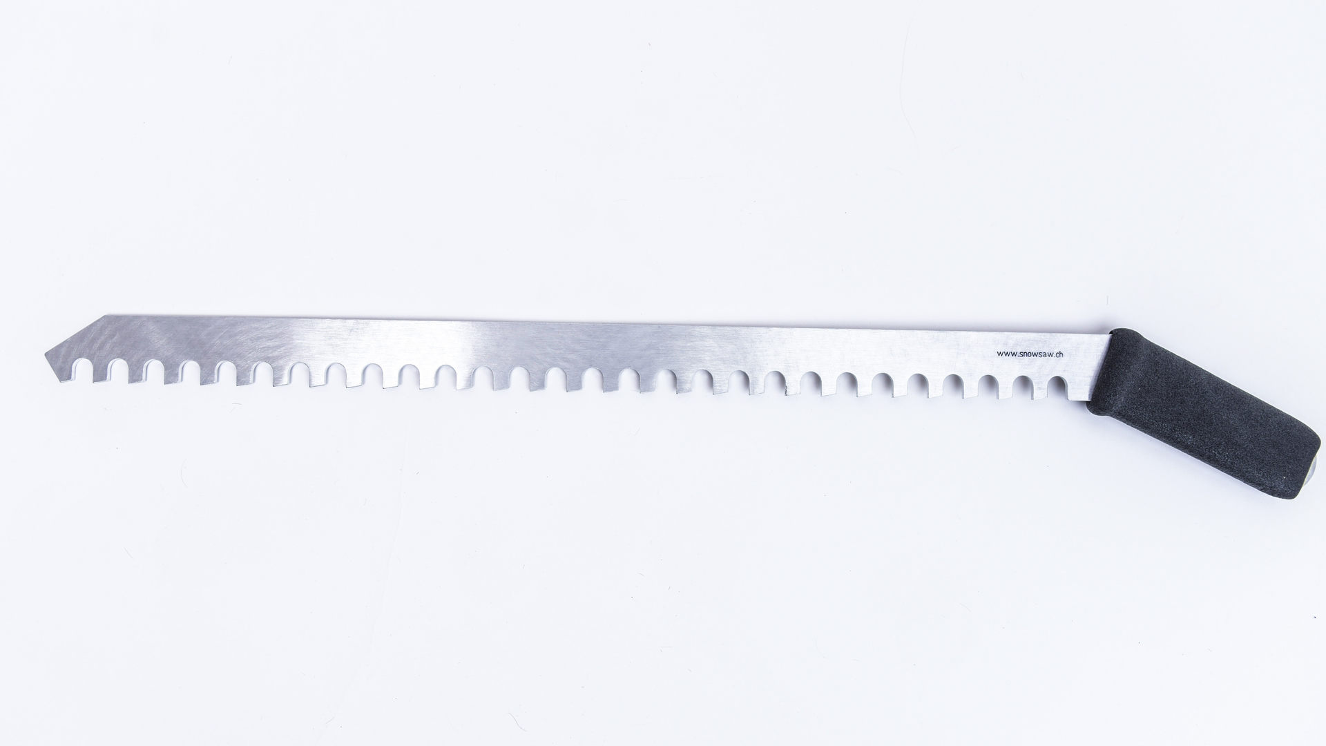 Die Abmessungen dieser Schneesäge entsprechen dem idealen Schneeblock. Die Gesamtlänge der Säge entspricht der Breite des Schneeblocks. Die Schneidelänge entspricht der Höhe, und die Grifflänge entspricht der Dicke. Beim Iglubauen ist es wichtig, dass die Schneeblöcke immer gleich gross sind. Die Masse der SCOUT sorgen dafür.