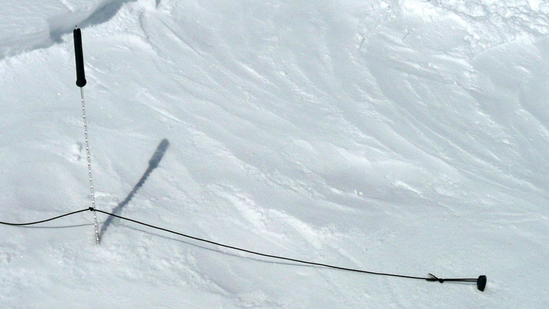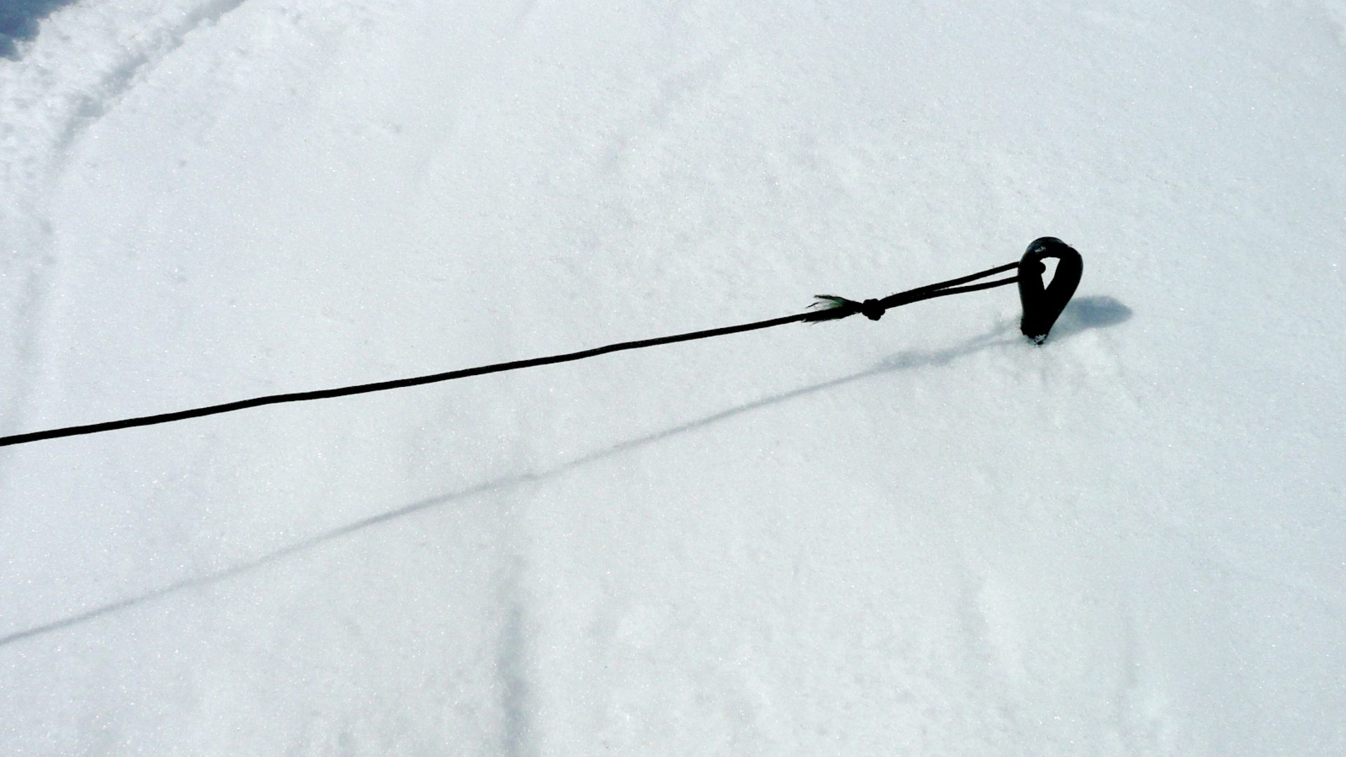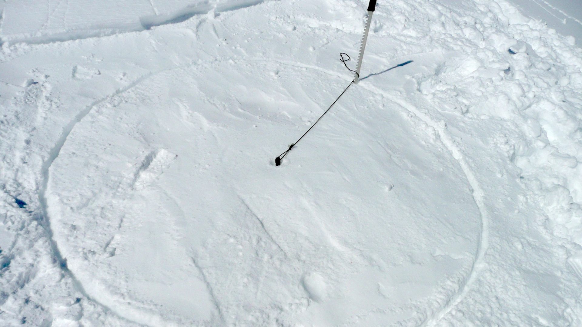 Pour le bâtiment d'igloo, vous avez besoin d'une ligne directrice. Ceci est ancré dans le centre de l'igloo (cercle) dans le sol. Mais avec quoi? Un bâton de ski n'est que partiellement adapté.